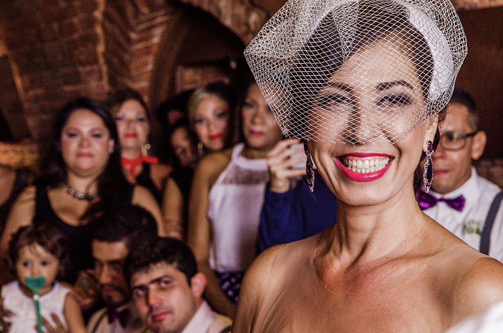 Nossa Casa Estúdio Gilson Freitas Fotógrafo profissional de casamentos fotografia de matrimônio em Niterói Rio de Janeiro com vestido branco e noivo casal na pista de dança e convidados dançando DJ Iluminação espaço Dimattoni felizes Noiva carro chegada