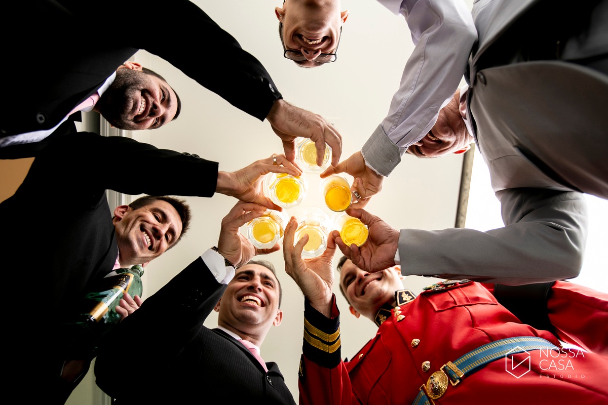 Se você curte tomar aquela cerveja gelada ou mesmo um bom uísque com seus camaradas, não é porque você vai se casar em algumas horas que está proibido de dar aquela relaxada. Nada contra quem não bebe, não mesmo, mas a minha experiência diz que fazer um bom brinde com os amigos deixa tudo mais leve e tranquilo. Porém nada de abusos! Seu casamento é sim um momento de alegria e descontração, mas é também importante e único, então pelo menos até a abertura da pista, segure a onda!